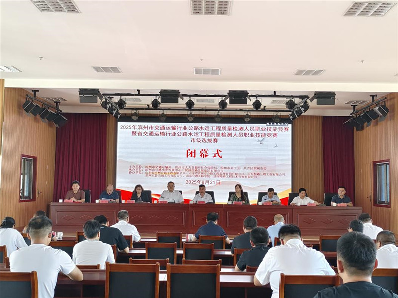 8月21日上午,2025年滨州市交通运输行业公路水运工程质量检测人员职业技能竞赛暨省交通运输行业公路水运工程质量检测人员职业技能竞赛市级选拔赛闭幕式在公司七楼会议室举办。市人力资源和社会保障局党组副书记、市公共就业和人才服务中心主任颜波,共青团滨州市委副书记丁宝冬,市交通运输局党组成员、副局长曹斌,市交通运输局党组成员、四级调研员钟军,公司党委副书记、总经理、董事刘汉兴及市交通运输局、市总工会有关部门及公司权属工程公司、监理公司有关负责同志参加活动。