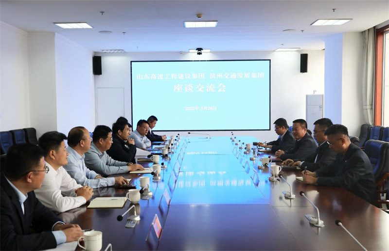 3月26日,山东高速工程建设集团党委书记、董事长张英亮一行到公司交流。公司党委书记、董事长李辉参加座谈。