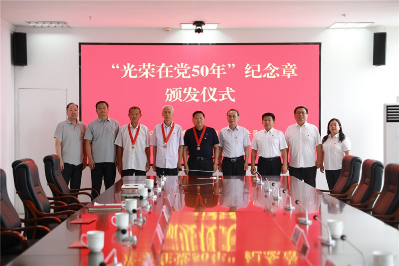 颜鲁博同志为三名老党员颁发了“光荣在党50年”纪念章,并送上慰问金,与会全体党员重温了入党誓词。 座谈交流中,三位老党员真切表达了对党和国家的忠诚与热爱,体现出爱党爱国的真挚情感。颜鲁博同志向获得“光荣在党50年”纪念章的老党员表示热烈祝贺,充分肯定了他们为公司发展作出的重要贡献,并表示将认真做好老同志的服务保障工作。刘汉兴同志围绕“感恩”“珍惜”“传承”“发展”四个方面分享了体会,希望各位老党员继续发光发热,一如既往地关心支持公司的各项工作。下一步,公司领导班子将充分发挥好带头作用,以崭新的精神面貌,团结带领全体干部职工全力以赴开拓市场、建设精品工程、加快转型升级,不断实现公司更高质量发展。